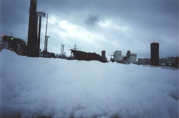 27th December 2005, 4.00pm: Flensburg Harbour, Germany Northern Germany over Christmas in cold-snap snow. After a walk down to the harbour to look at old ships we find this umbrella, abandoned and contrasted in the snow.