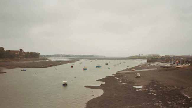 Waders are on the shoreline arguing about ownership of shellfish beds,